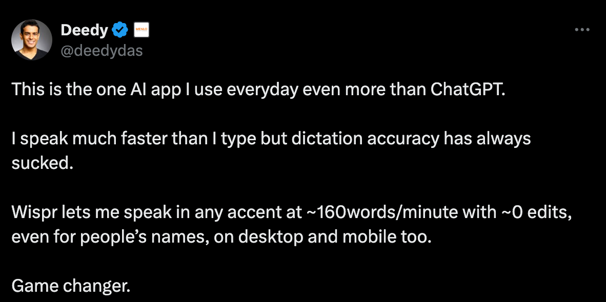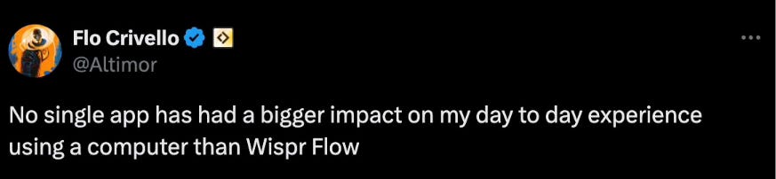 Their Series A funding announcement noted that every single tier one venture fund in the valley uses Wispr Flow. Every so often there is an unprompted X post spelling out how much people love it.
